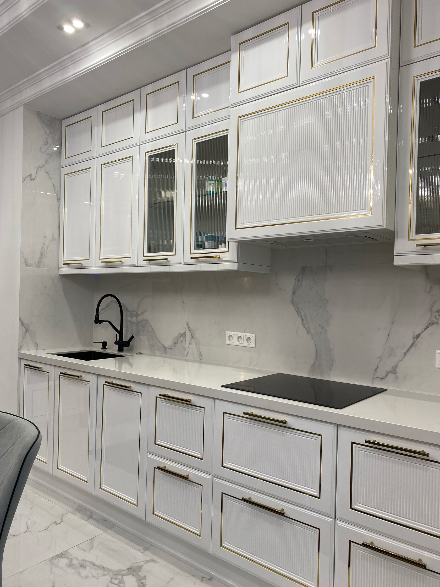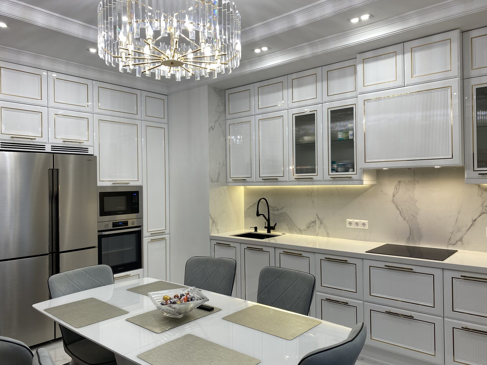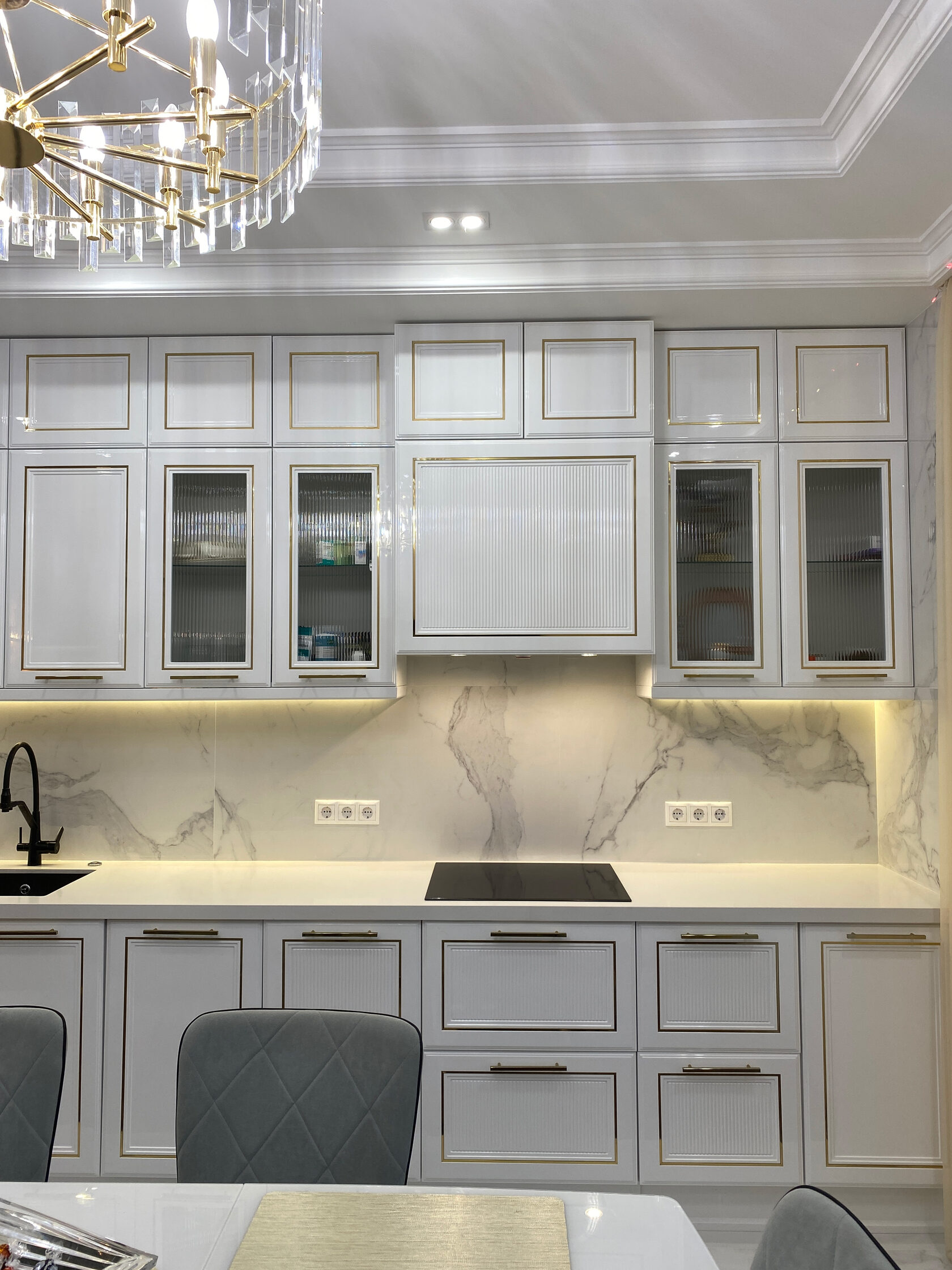 • Размеры: 4550*3000 (пеналы) мм; Н= 2520 мм; остров 1800*600 мм